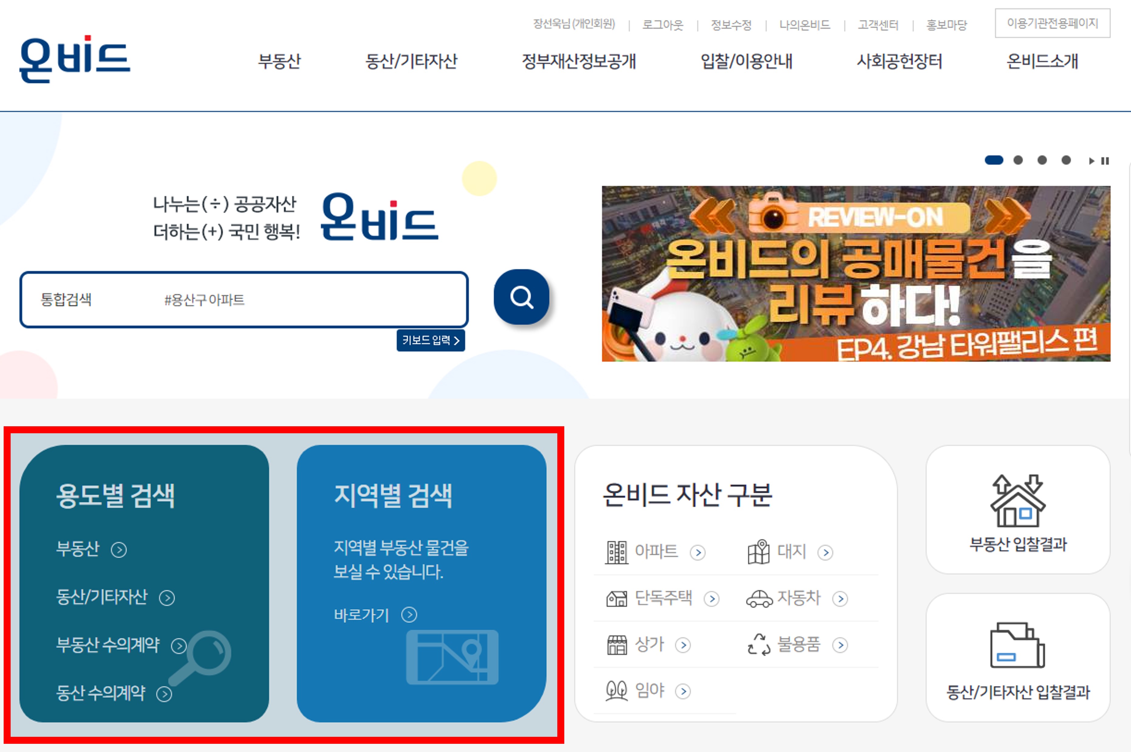온비드에서는 다음과 같은 다양한 검색 옵션을 제공합니다: